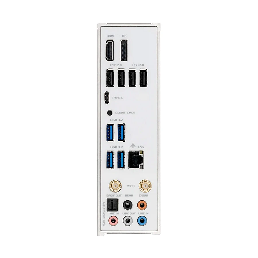 Connectivity is a strong suit: built-in Wi-Fi 6 and Bluetooth 5.2 deliver fast and stable wireless networking, while Realtek 2.5G Ethernet ensures low-latency wired performance for online gaming and streaming. The rear I/O panel includes a mix of USB-C (10 Gbps), USB 3.2 Gen1, and USB 2.0 ports to support a wide range of peripherals and high-speed devices.